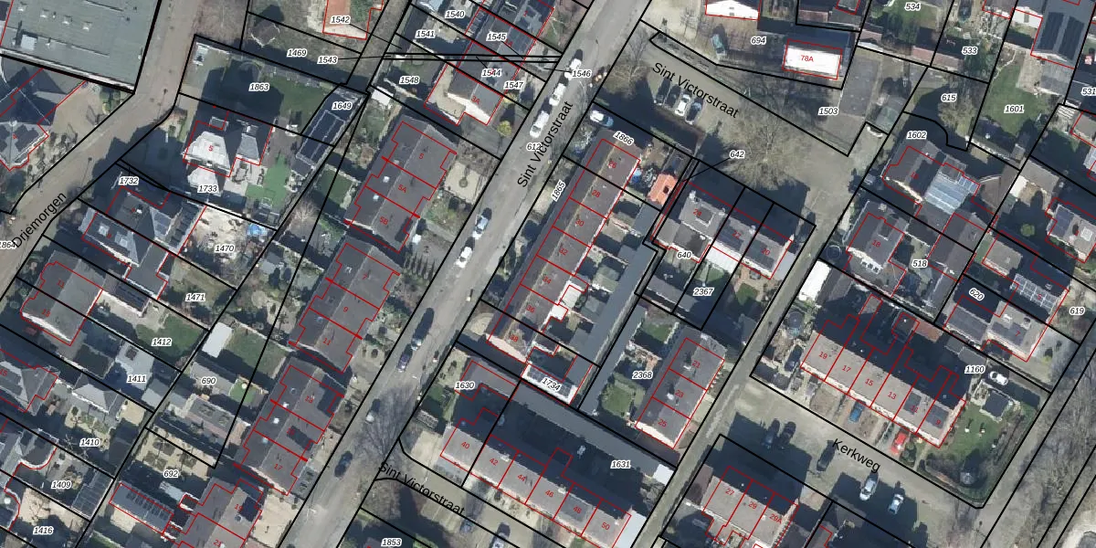 Het perceel waarop Sint Victorstraat 34 staat heeft een oppervlakte van 730 m². Dit is een groot perceel. De perceeloppervlakte wordt geregistreerd door het Kadaster. Gedetailleerde informatie over de maten van dit perceel kunt u vinden in het rapport Kadastrale kaart met maatvoering van Sint Victorstraat 34.