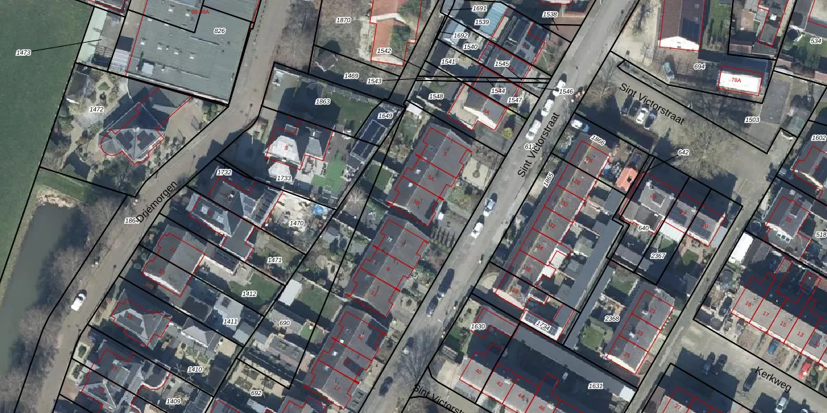 Sint Victorstraat 5-B is gelegen op kadastraal perceel DTN03D692. Deze kadastrale aanduiding is uniek en wordt gebruikt door het Kadaster om eigendomsrechten en andere zakelijke rechten vast te leggen. Het perceel maakt onderdeel uit van de kadastrale gemeente Druten.