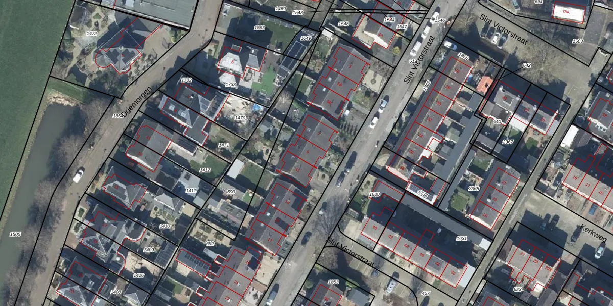 Sint Victorstraat 9 is gelegen op kadastraal perceel DTN03D692. Deze kadastrale aanduiding is uniek en wordt gebruikt door het Kadaster om eigendomsrechten en andere zakelijke rechten vast te leggen. Het perceel maakt onderdeel uit van de kadastrale gemeente Druten.