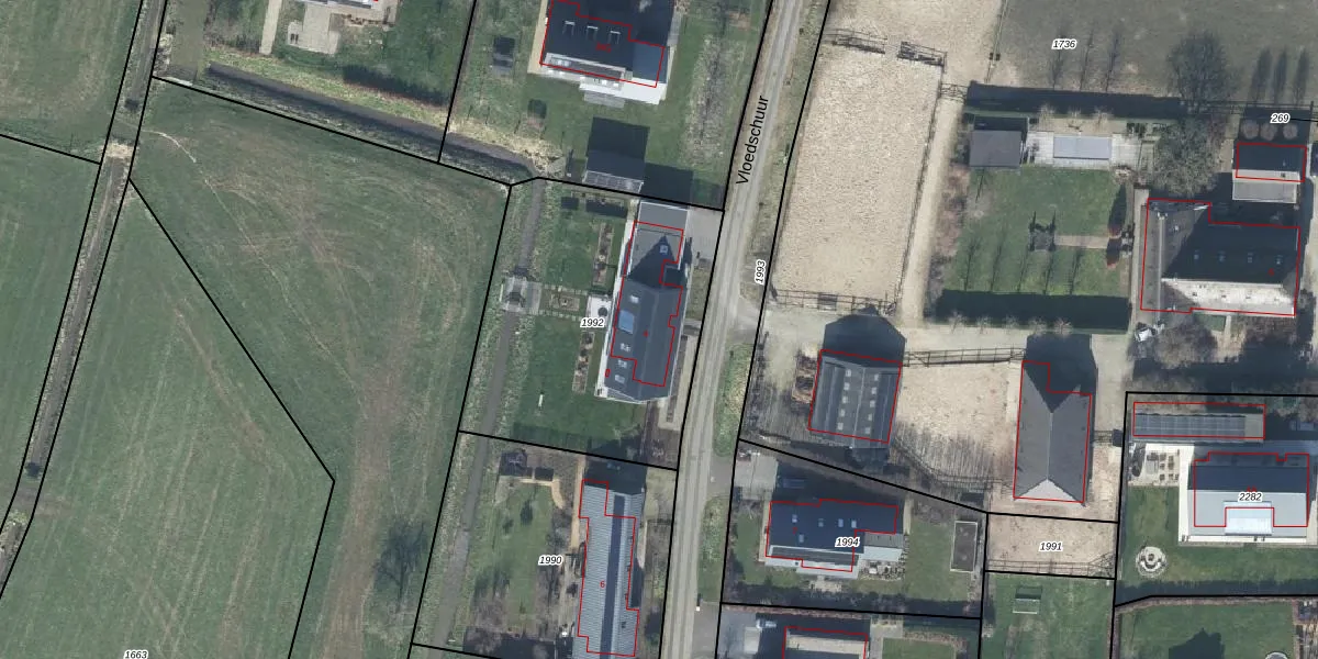 Het perceel waarop Vloedschuur 4 staat heeft een oppervlakte van 1317 m². Dit is een zeer groot perceel. De perceeloppervlakte wordt geregistreerd door het Kadaster. Gedetailleerde informatie over de maten van dit perceel kunt u vinden in het rapport Kadastrale kaart met maatvoering van Vloedschuur 4.