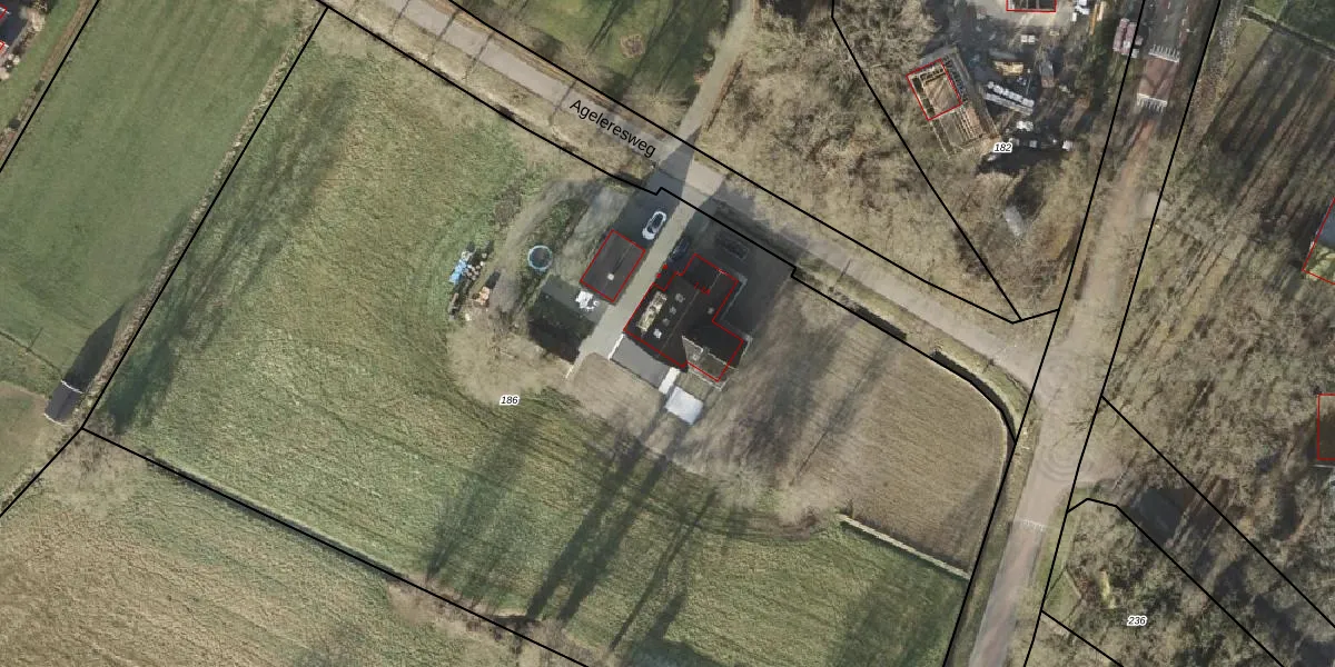 Ageleresweg 1 is gelegen op kadastraal perceel DNK00Q186. Deze kadastrale aanduiding is uniek en wordt gebruikt door het Kadaster om eigendomsrechten en andere zakelijke rechten vast te leggen. Het perceel maakt onderdeel uit van de kadastrale gemeente Denekamp.