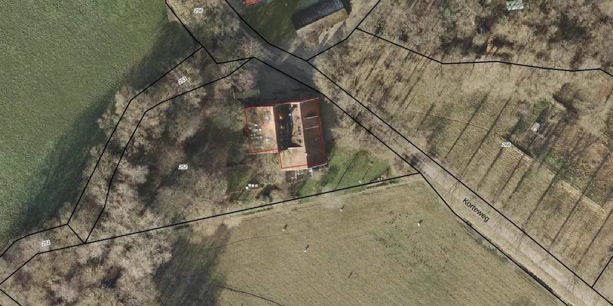 Het perceel waarop Korteweg 4-C staat heeft een oppervlakte van 3390 m². Dit is een zeer groot perceel. De perceeloppervlakte wordt geregistreerd door het Kadaster. Gedetailleerde informatie over de maten van dit perceel kunt u vinden in het rapport Kadastrale kaart met maatvoering van Korteweg 4-C.