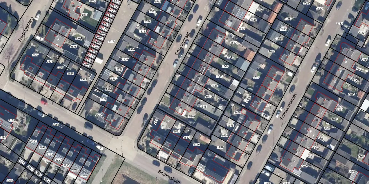 Het perceel waarop Chopinstraat 21 staat heeft een oppervlakte van 203 m². Dit is een middelgroot perceel. De perceeloppervlakte wordt geregistreerd door het Kadaster. Gedetailleerde informatie over de maten van dit perceel kunt u vinden in het rapport Kadastrale kaart met maatvoering van Chopinstraat 21.