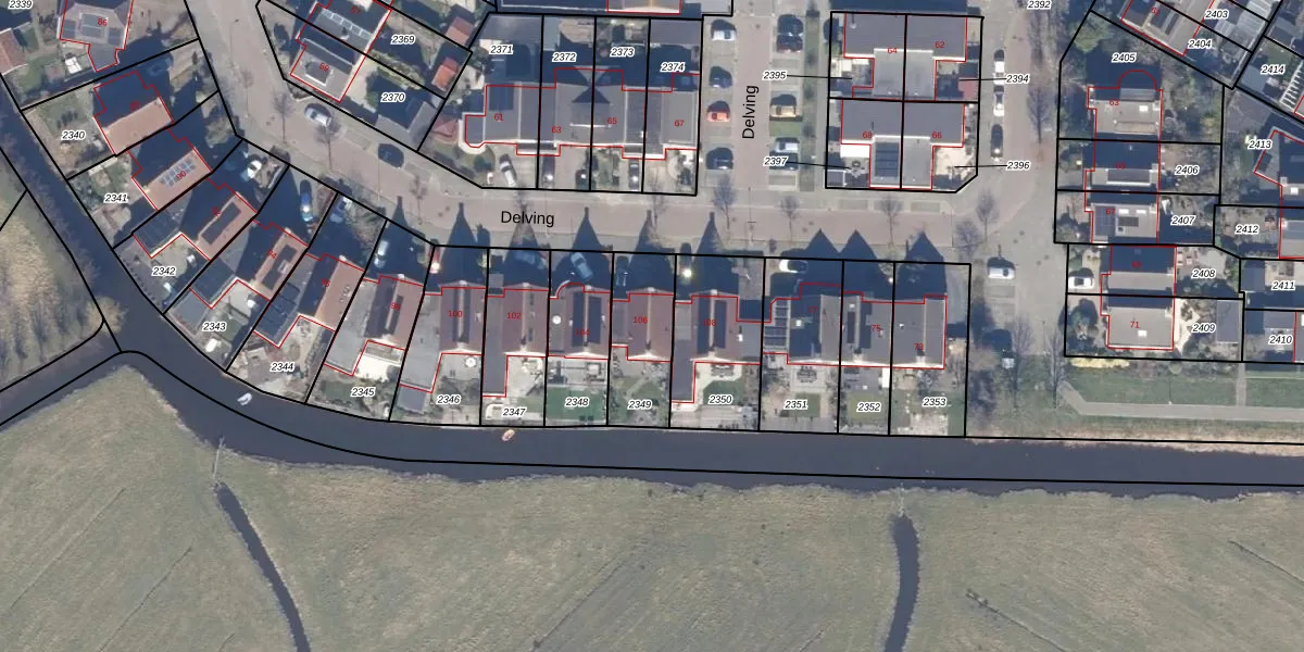 Het perceel waarop Delving 106 staat heeft een oppervlakte van 259 m². Dit is een middelgroot perceel. De perceeloppervlakte wordt geregistreerd door het Kadaster. Gedetailleerde informatie over de maten van dit perceel kunt u vinden in het rapport Kadastrale kaart met maatvoering van Delving 106.