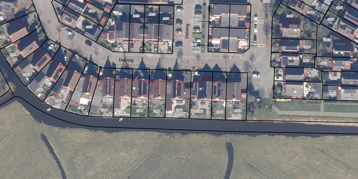 Het perceel waarop Delving 108 staat heeft een oppervlakte van 368 m². Dit is een groot perceel. De perceeloppervlakte wordt geregistreerd door het Kadaster. Gedetailleerde informatie over de maten van dit perceel kunt u vinden in het rapport Kadastrale kaart met maatvoering van Delving 108.