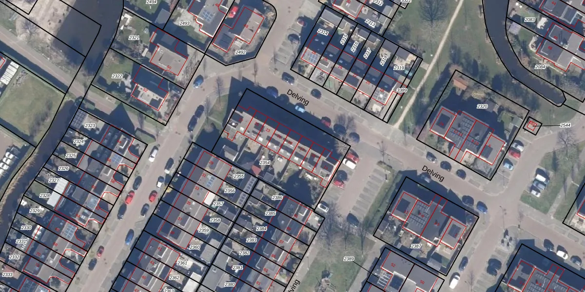 Het perceel waarop Delving 19 staat heeft een oppervlakte van 1010 m². Dit is een zeer groot perceel. De perceeloppervlakte wordt geregistreerd door het Kadaster. Gedetailleerde informatie over de maten van dit perceel kunt u vinden in het rapport Kadastrale kaart met maatvoering van Delving 19.