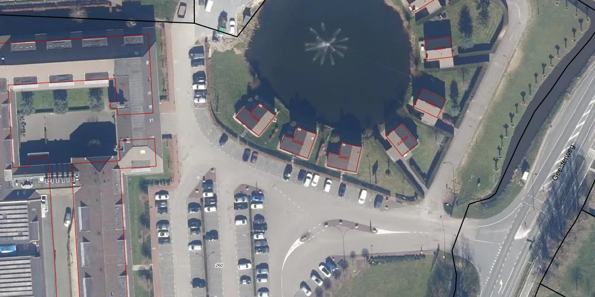 Het perceel waarop Geesterweg 1-a-508 staat heeft een oppervlakte van 4,6 ha. Dit is een zeer groot perceel. De perceeloppervlakte wordt geregistreerd door het Kadaster. Gedetailleerde informatie over de maten van dit perceel kunt u vinden in het rapport Kadastrale kaart met maatvoering van Geesterweg 1-a-508.