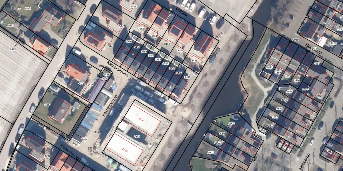 Het perceel waarop Keizerskroon 15 staat heeft een oppervlakte van 99 m². Dit is een klein perceel. De perceeloppervlakte wordt geregistreerd door het Kadaster. Gedetailleerde informatie over de maten van dit perceel kunt u vinden in het rapport Kadastrale kaart met maatvoering van Keizerskroon 15.