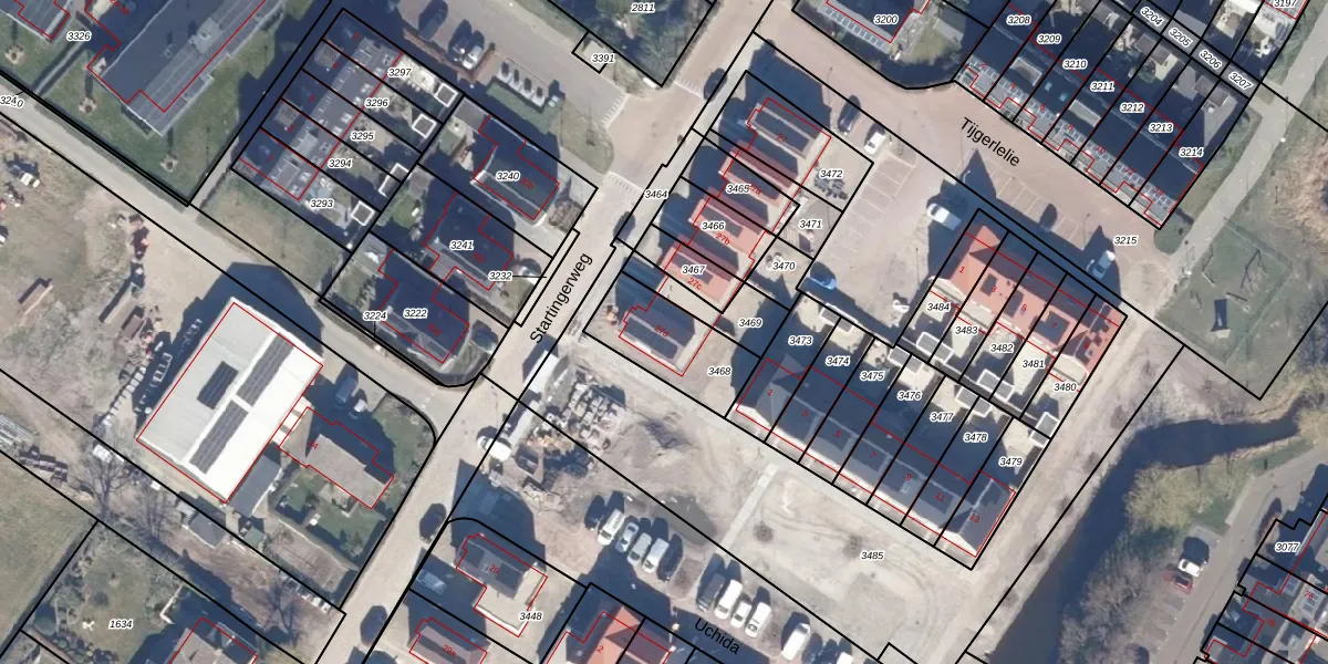 Gebruik de zoekbalk of klik op een perceel voor informatie over de adressen binnen dit perceel.