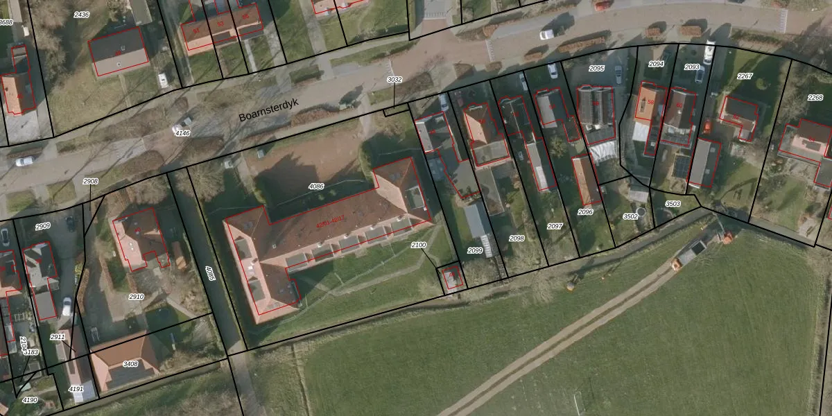 Het perceel waarop Boarnsterdyk 42-16 staat heeft een oppervlakte van 2531 m². Dit is een zeer groot perceel. De perceeloppervlakte wordt geregistreerd door het Kadaster. Gedetailleerde informatie over de maten van dit perceel kunt u vinden in het rapport Kadastrale kaart met maatvoering van Boarnsterdyk 42-16.
