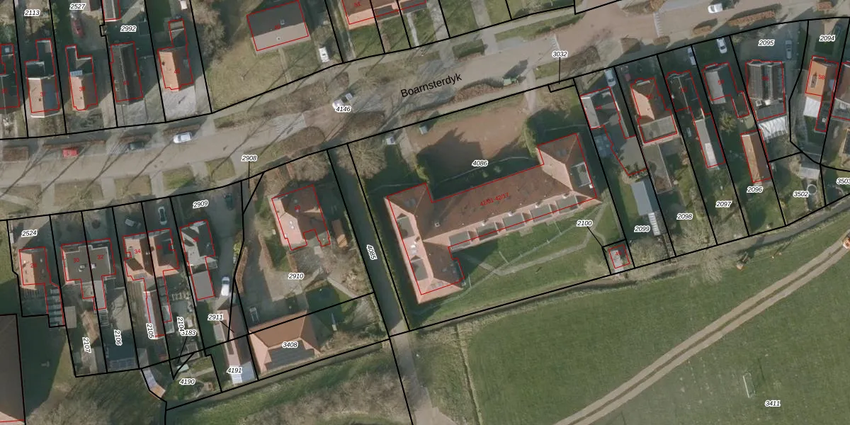 Het perceel waarop Boarnsterdyk 42-03 staat heeft een oppervlakte van 2531 m². Dit is een zeer groot perceel. De perceeloppervlakte wordt geregistreerd door het Kadaster. Gedetailleerde informatie over de maten van dit perceel kunt u vinden in het rapport Kadastrale kaart met maatvoering van Boarnsterdyk 42-03.