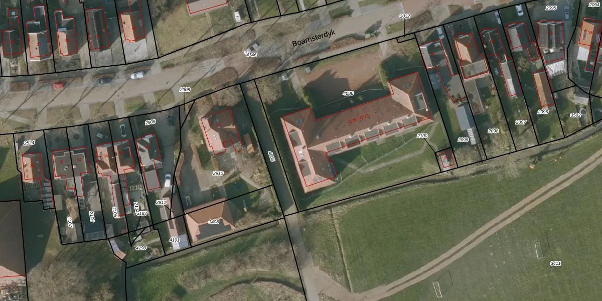 Het perceel waarop Boarnsterdyk 42-04 staat heeft een oppervlakte van 2531 m². Dit is een zeer groot perceel. De perceeloppervlakte wordt geregistreerd door het Kadaster. Gedetailleerde informatie over de maten van dit perceel kunt u vinden in het rapport Kadastrale kaart met maatvoering van Boarnsterdyk 42-04.