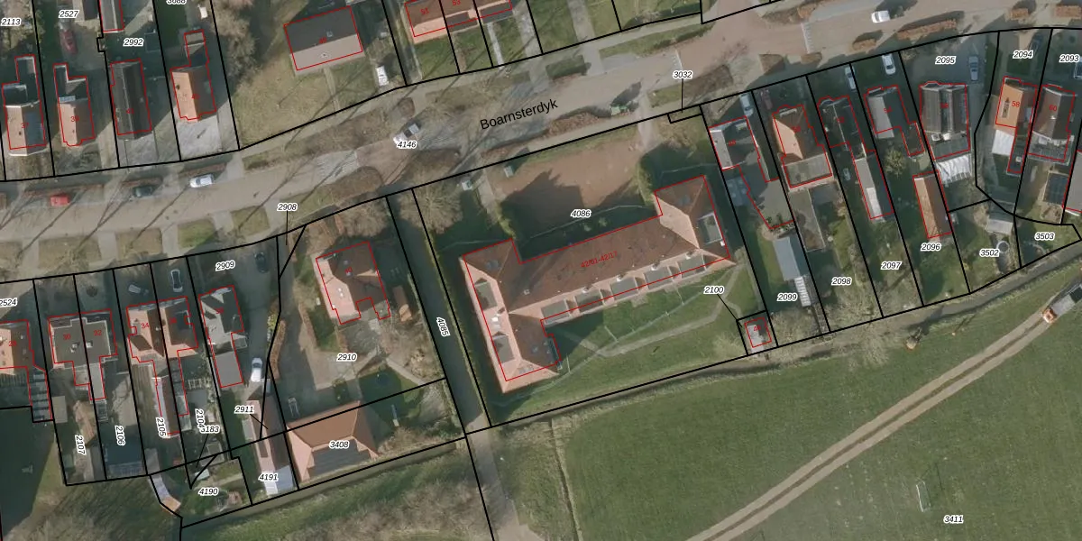 Het perceel waarop Boarnsterdyk 42-08 staat heeft een oppervlakte van 2531 m². Dit is een zeer groot perceel. De perceeloppervlakte wordt geregistreerd door het Kadaster. Gedetailleerde informatie over de maten van dit perceel kunt u vinden in het rapport Kadastrale kaart met maatvoering van Boarnsterdyk 42-08.