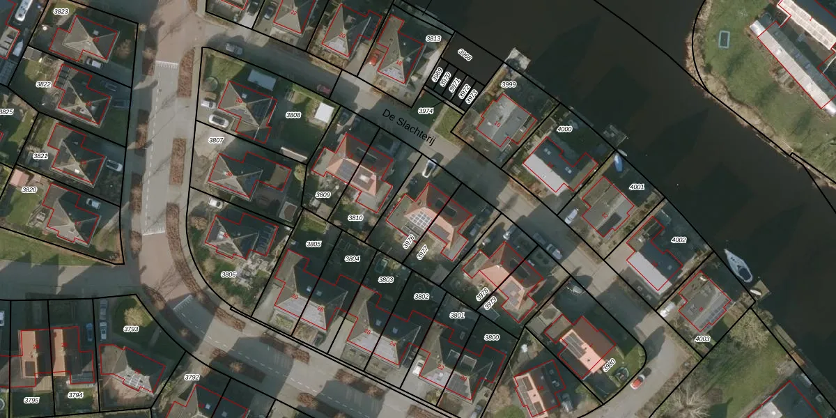 De Slachterij 9 is gelegen op kadastraal perceel AKM02B3976. Deze kadastrale aanduiding is uniek en wordt gebruikt door het Kadaster om eigendomsrechten en andere zakelijke rechten vast te leggen. Het perceel maakt onderdeel uit van de kadastrale gemeente Akkrum.