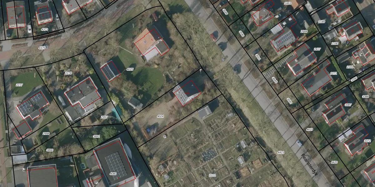 Het perceel waarop Feansterdyk 20-A staat heeft een oppervlakte van 870 m². Dit is een groot perceel. De perceeloppervlakte wordt geregistreerd door het Kadaster. Gedetailleerde informatie over de maten van dit perceel kunt u vinden in het rapport Kadastrale kaart met maatvoering van Feansterdyk 20-A.