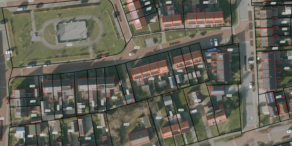 Het perceel waarop Jokwei 18 staat heeft een oppervlakte van 825 m². Dit is een groot perceel. De perceeloppervlakte wordt geregistreerd door het Kadaster. Gedetailleerde informatie over de maten van dit perceel kunt u vinden in het rapport Kadastrale kaart met maatvoering van Jokwei 18.