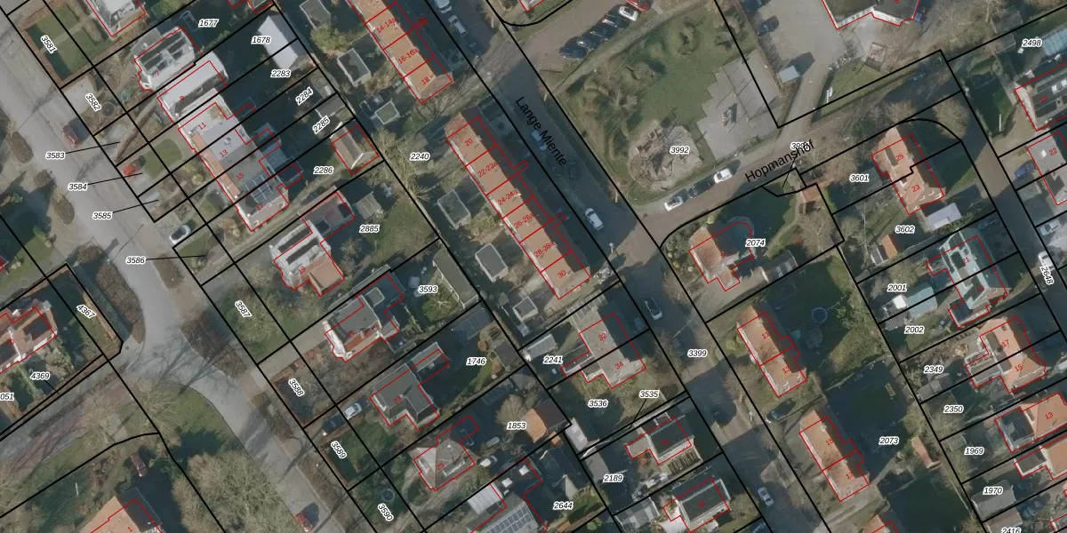 Het perceel waarop Lange Miente 30 staat heeft een oppervlakte van 2060 m². Dit is een zeer groot perceel. De perceeloppervlakte wordt geregistreerd door het Kadaster. Gedetailleerde informatie over de maten van dit perceel kunt u vinden in het rapport Kadastrale kaart met maatvoering van Lange Miente 30.