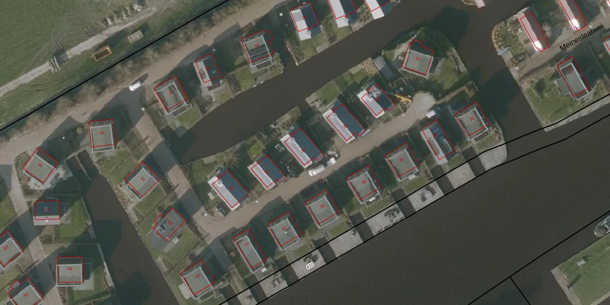 Het perceel waarop Meinesleatwei 30 staat heeft een oppervlakte van 2,8 ha. Dit is een zeer groot perceel. De perceeloppervlakte wordt geregistreerd door het Kadaster. Gedetailleerde informatie over de maten van dit perceel kunt u vinden in het rapport Kadastrale kaart met maatvoering van Meinesleatwei 30.
