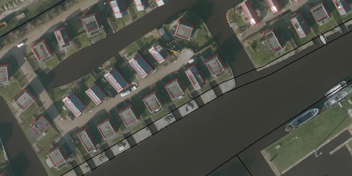 Het perceel waarop Meinesleatwei 37 staat heeft een oppervlakte van 2,8 ha. Dit is een zeer groot perceel. De perceeloppervlakte wordt geregistreerd door het Kadaster. Gedetailleerde informatie over de maten van dit perceel kunt u vinden in het rapport Kadastrale kaart met maatvoering van Meinesleatwei 37.