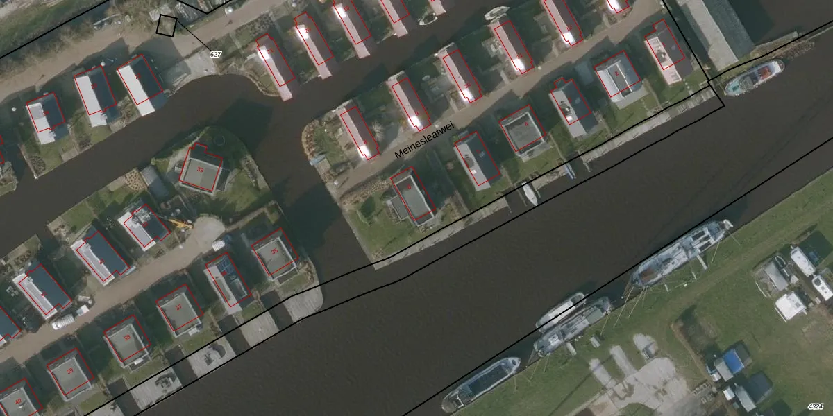 Het perceel waarop Meinesleatwei 6 staat heeft een oppervlakte van 2,8 ha. Dit is een zeer groot perceel. De perceeloppervlakte wordt geregistreerd door het Kadaster. Gedetailleerde informatie over de maten van dit perceel kunt u vinden in het rapport Kadastrale kaart met maatvoering van Meinesleatwei 6.