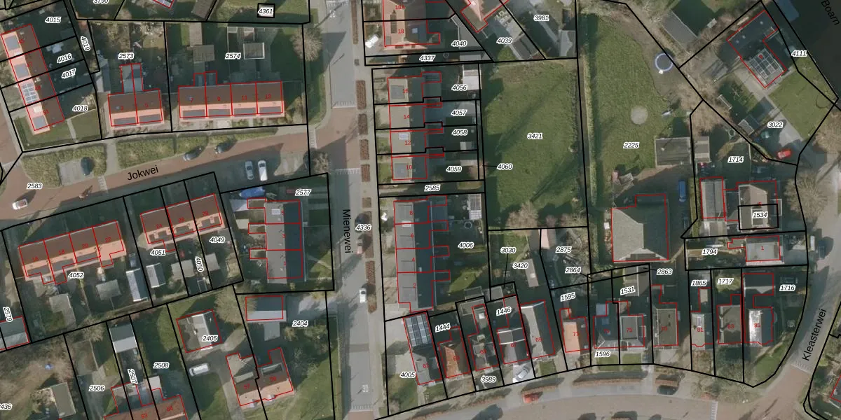 Het perceel waarop Mienewei 8 staat heeft een oppervlakte van 685 m². Dit is een groot perceel. De perceeloppervlakte wordt geregistreerd door het Kadaster. Gedetailleerde informatie over de maten van dit perceel kunt u vinden in het rapport Kadastrale kaart met maatvoering van Mienewei 8.