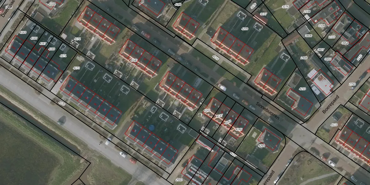 Het perceel waarop Sinnebuorren 37 staat heeft een oppervlakte van 2129 m². Dit is een zeer groot perceel. De perceeloppervlakte wordt geregistreerd door het Kadaster. Gedetailleerde informatie over de maten van dit perceel kunt u vinden in het rapport Kadastrale kaart met maatvoering van Sinnebuorren 37.