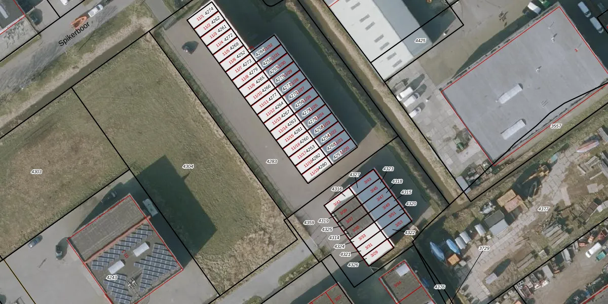 Het perceel waarop Spikerboor 11-17 staat heeft een oppervlakte van 35 m². Dit is een klein perceel. De perceeloppervlakte wordt geregistreerd door het Kadaster. Gedetailleerde informatie over de maten van dit perceel kunt u vinden in het rapport Kadastrale kaart met maatvoering van Spikerboor 11-17.