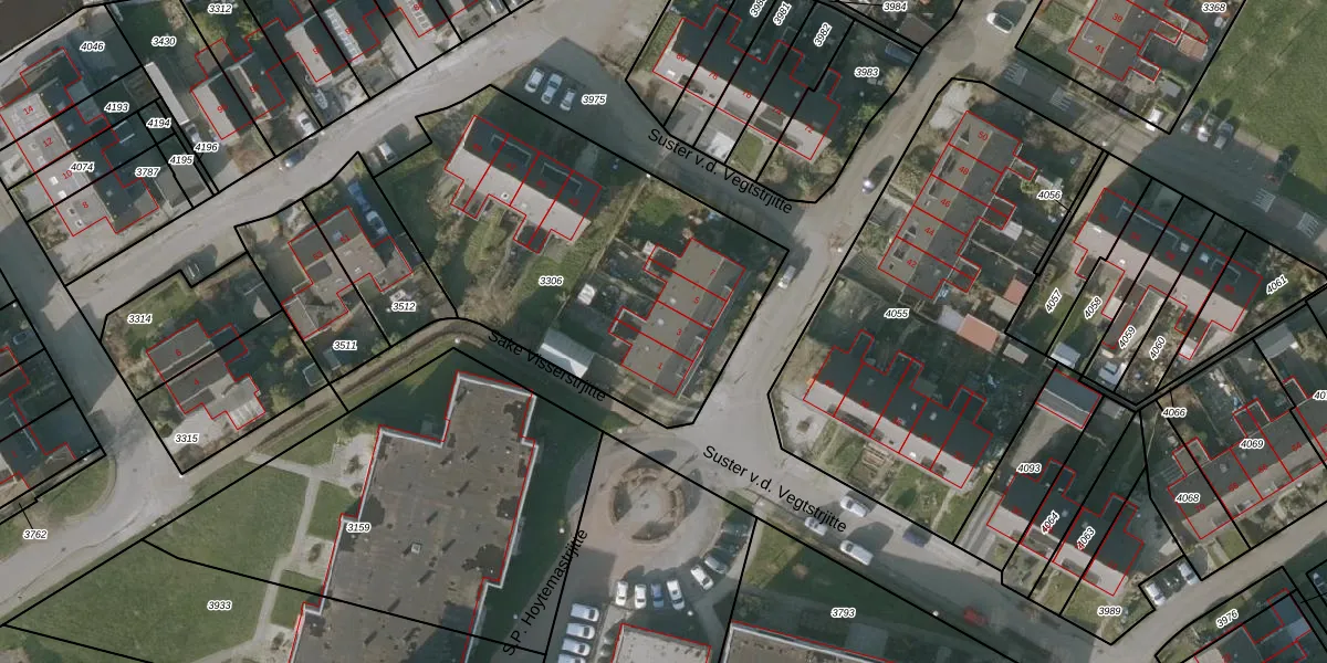 Het perceel waarop Suster v.d. Vegtstrjitte 3 staat heeft een oppervlakte van 1743 m². Dit is een zeer groot perceel. De perceeloppervlakte wordt geregistreerd door het Kadaster. Gedetailleerde informatie over de maten van dit perceel kunt u vinden in het rapport Kadastrale kaart met maatvoering van Suster v.d. Vegtstrjitte 3.