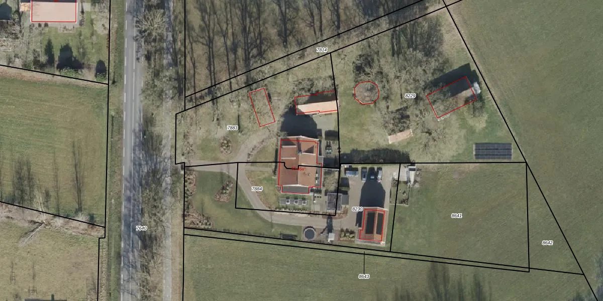 Het adres is gelegen op perceel 7883 in de sectie H en de kadastrale gemeente Tubbergen. De kadastrale aanduiding is aldus TBG02-H-7883. Het perceel is kleiner dan gemiddeld in Tubbergen. Het perceel is 1450 m² groot, terwijl het gemiddelde ligt op 6612,91 m². Het kleinste perceel in de kadastrale gemeente is 0 m² groot. De grootste perceeloppervlakte is 30,6 ha. Op het perceel bevinden zich geen andere adressen. De huidige grenzen van het perceel zijn digitaal in de Basisregistratie Kadaster (BRK) geregistreerd op 11-01-2011.