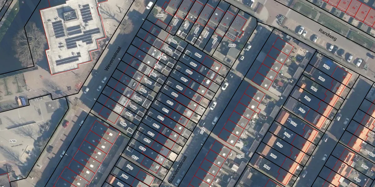 Gebruik de zoekbalk of klik op een perceel voor informatie over de adressen binnen dit perceel.