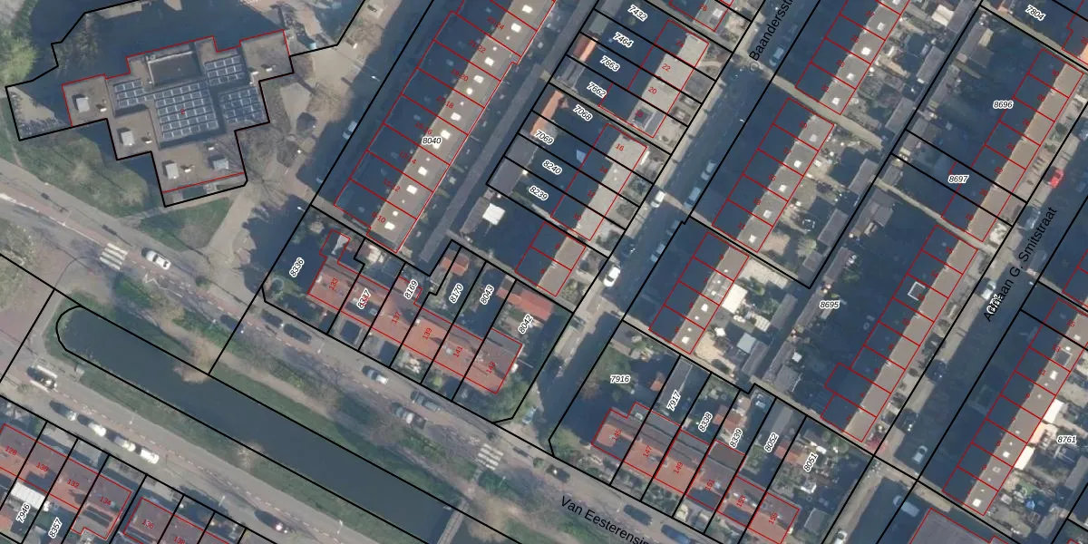 Het perceel waarop Baandersstraat 6 staat heeft een oppervlakte van 2275 m². Dit is een zeer groot perceel. De perceeloppervlakte wordt geregistreerd door het Kadaster. Gedetailleerde informatie over de maten van dit perceel kunt u vinden in het rapport Kadastrale kaart met maatvoering van Baandersstraat 6.
