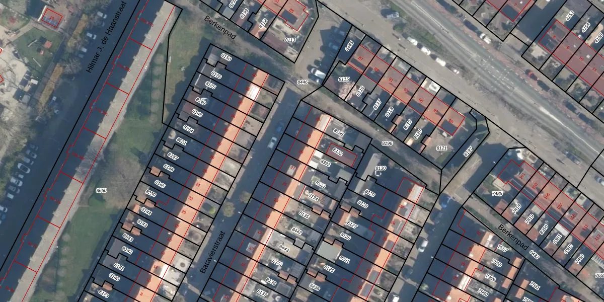 Gebruik de zoekbalk of klik op een perceel voor informatie over de adressen binnen dit perceel.