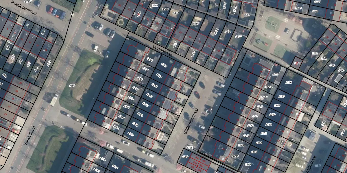 Gebruik de zoekbalk of klik op een perceel voor informatie over de adressen binnen dit perceel.