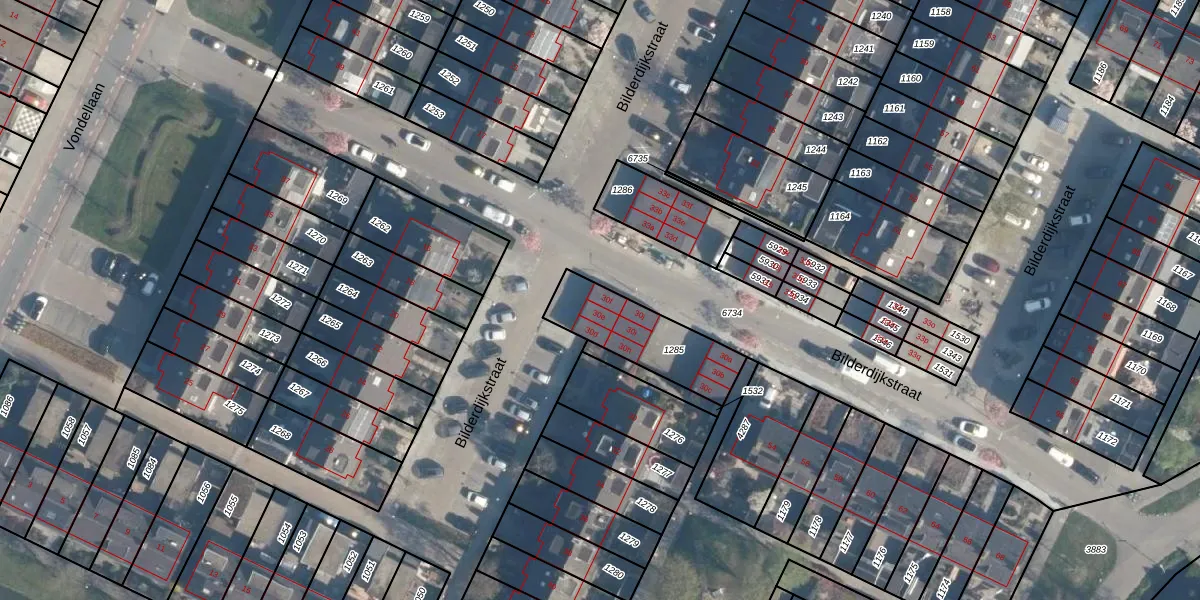 Het perceel waarop Bilderdijkstraat 30-f staat heeft een oppervlakte van 303 m². Dit is een groot perceel. De perceeloppervlakte wordt geregistreerd door het Kadaster. Gedetailleerde informatie over de maten van dit perceel kunt u vinden in het rapport Kadastrale kaart met maatvoering van Bilderdijkstraat 30-f.