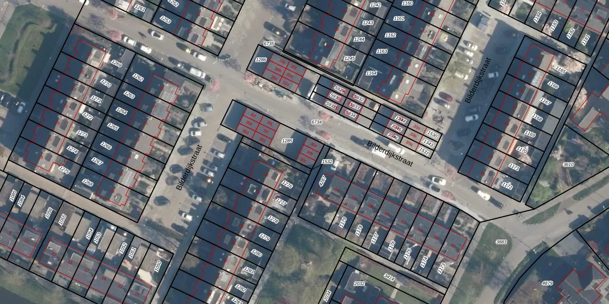 Het perceel waarop Bilderdijkstraat 30-b staat heeft een oppervlakte van 303 m². Dit is een groot perceel. De perceeloppervlakte wordt geregistreerd door het Kadaster. Gedetailleerde informatie over de maten van dit perceel kunt u vinden in het rapport Kadastrale kaart met maatvoering van Bilderdijkstraat 30-b.