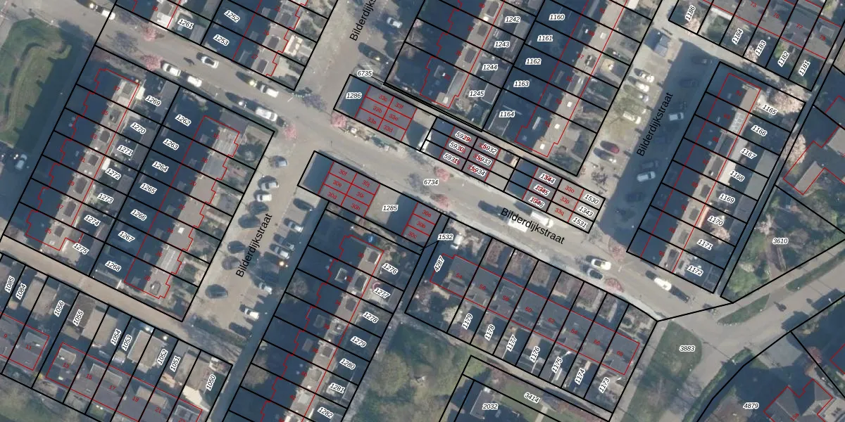 Het perceel waarop Bilderdijkstraat 30-a staat heeft een oppervlakte van 303 m². Dit is een groot perceel. De perceeloppervlakte wordt geregistreerd door het Kadaster. Gedetailleerde informatie over de maten van dit perceel kunt u vinden in het rapport Kadastrale kaart met maatvoering van Bilderdijkstraat 30-a.