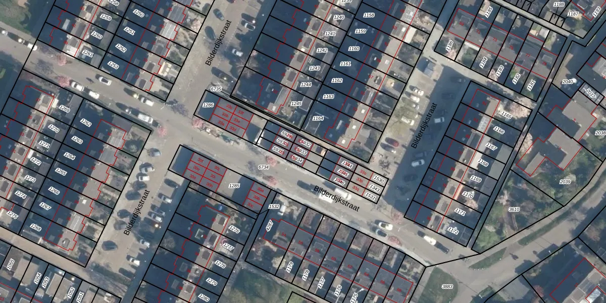 Het perceel waarop Bilderdijkstraat 30-g staat heeft een oppervlakte van 33 m². Dit is een klein perceel. De perceeloppervlakte wordt geregistreerd door het Kadaster. Gedetailleerde informatie over de maten van dit perceel kunt u vinden in het rapport Kadastrale kaart met maatvoering van Bilderdijkstraat 30-g.
