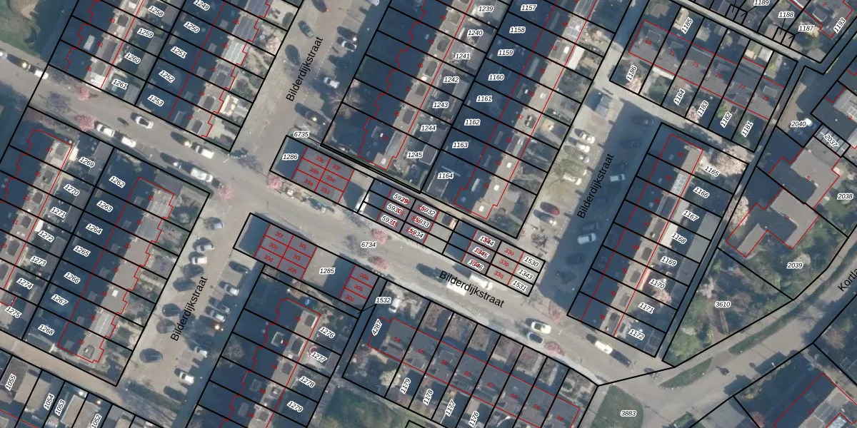 Gebruik de zoekbalk of klik op een perceel voor informatie over de adressen binnen dit perceel.