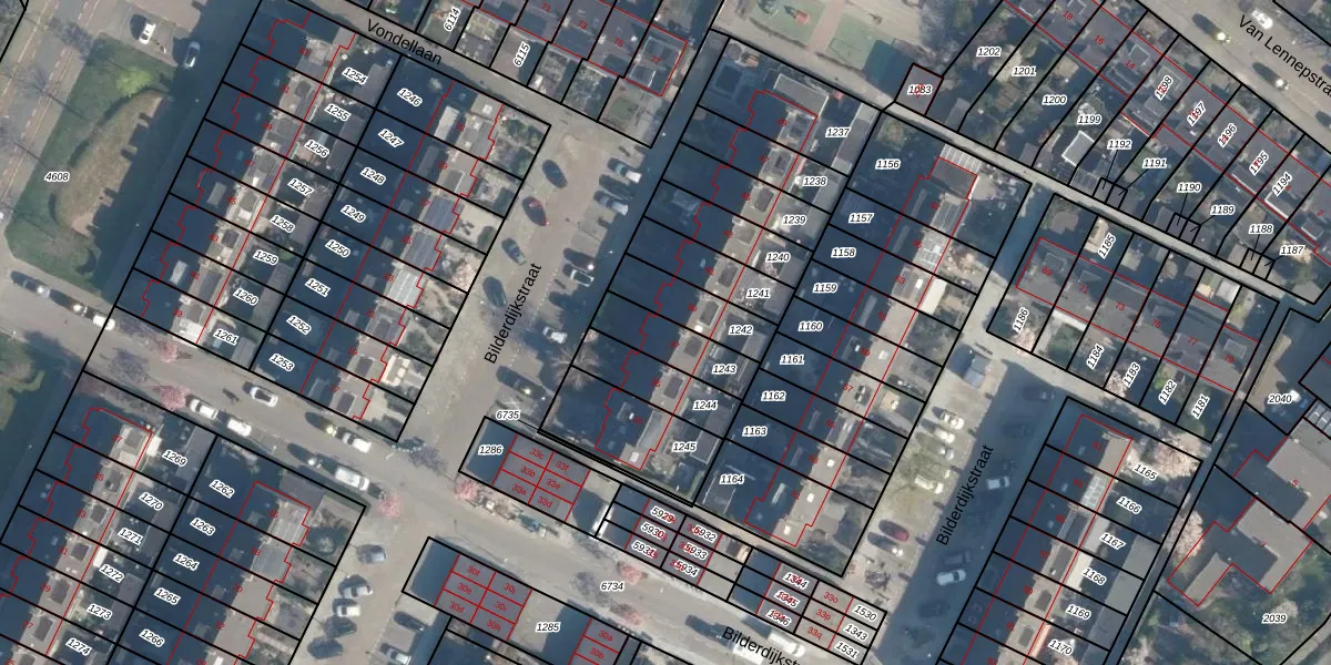 Het perceel waarop Bilderdijkstraat 37 staat heeft een oppervlakte van 158 m². Dit is een middelgroot perceel. De perceeloppervlakte wordt geregistreerd door het Kadaster. Gedetailleerde informatie over de maten van dit perceel kunt u vinden in het rapport Kadastrale kaart met maatvoering van Bilderdijkstraat 37.