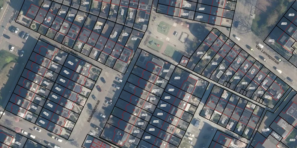 Het perceel waarop Bilderdijkstraat 47 staat heeft een oppervlakte van 157 m². Dit is een middelgroot perceel. De perceeloppervlakte wordt geregistreerd door het Kadaster. Gedetailleerde informatie over de maten van dit perceel kunt u vinden in het rapport Kadastrale kaart met maatvoering van Bilderdijkstraat 47.