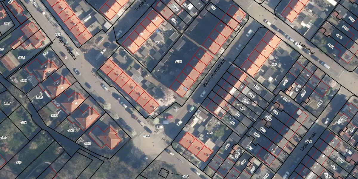 Het perceel waarop Blokmakersstraat 12 staat heeft een oppervlakte van 2275 m². Dit is een zeer groot perceel. De perceeloppervlakte wordt geregistreerd door het Kadaster. Gedetailleerde informatie over de maten van dit perceel kunt u vinden in het rapport Kadastrale kaart met maatvoering van Blokmakersstraat 12.