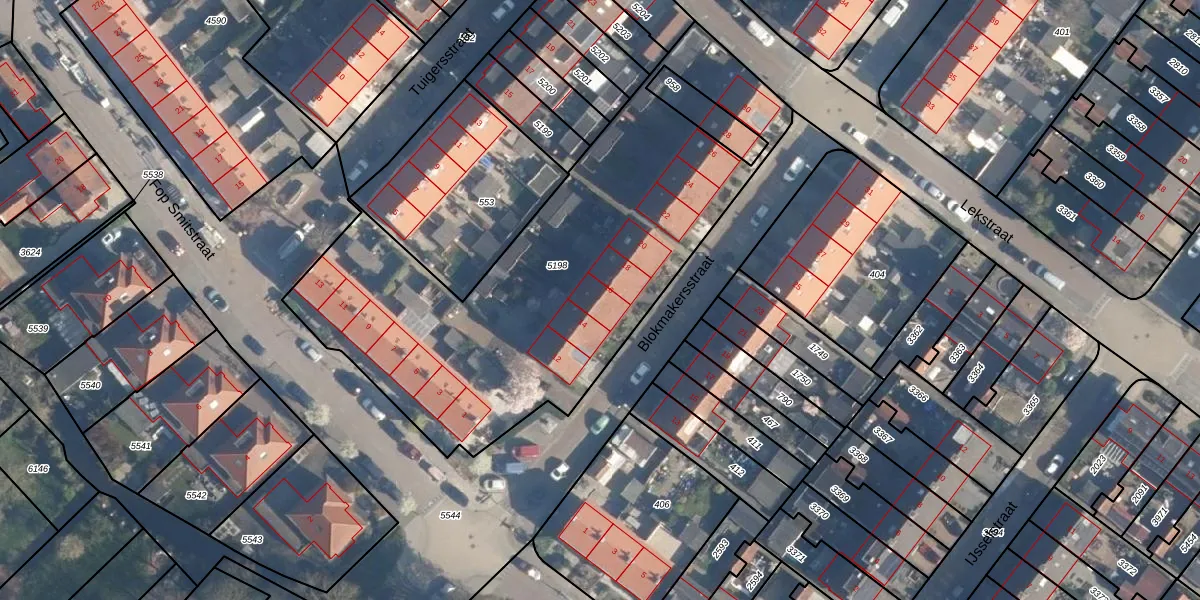 Het perceel waarop Blokmakersstraat 16 staat heeft een oppervlakte van 2275 m². Dit is een zeer groot perceel. De perceeloppervlakte wordt geregistreerd door het Kadaster. Gedetailleerde informatie over de maten van dit perceel kunt u vinden in het rapport Kadastrale kaart met maatvoering van Blokmakersstraat 16.