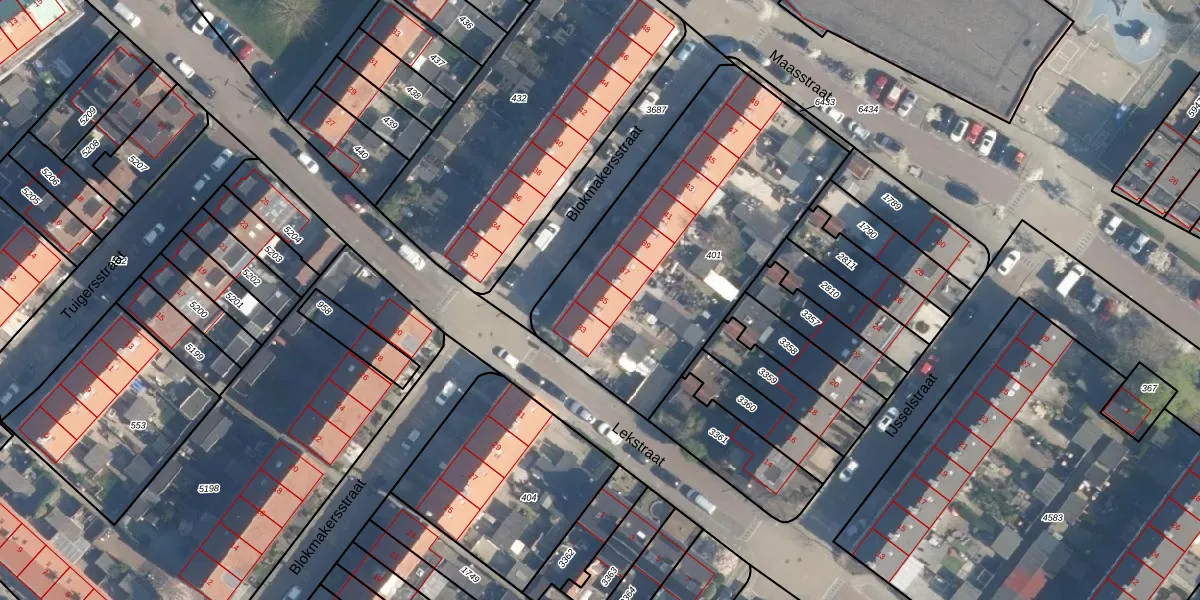 Het perceel waarop Blokmakersstraat 35 staat heeft een oppervlakte van 1485 m². Dit is een zeer groot perceel. De perceeloppervlakte wordt geregistreerd door het Kadaster. Gedetailleerde informatie over de maten van dit perceel kunt u vinden in het rapport Kadastrale kaart met maatvoering van Blokmakersstraat 35.