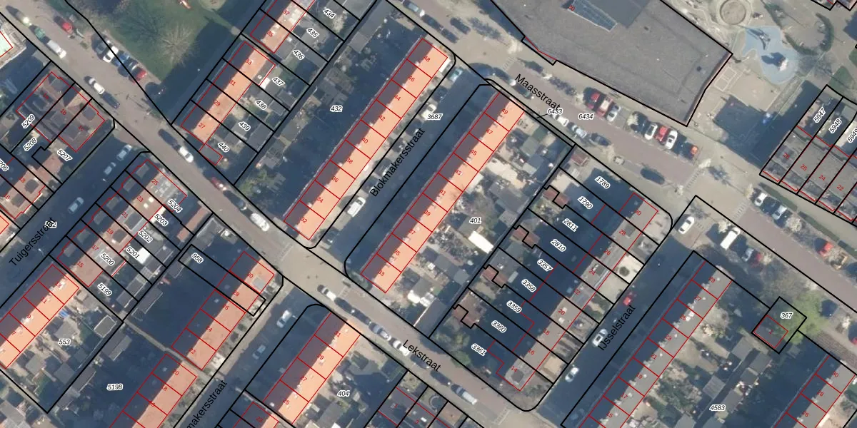 Het perceel waarop Blokmakersstraat 39 staat heeft een oppervlakte van 1485 m². Dit is een zeer groot perceel. De perceeloppervlakte wordt geregistreerd door het Kadaster. Gedetailleerde informatie over de maten van dit perceel kunt u vinden in het rapport Kadastrale kaart met maatvoering van Blokmakersstraat 39.