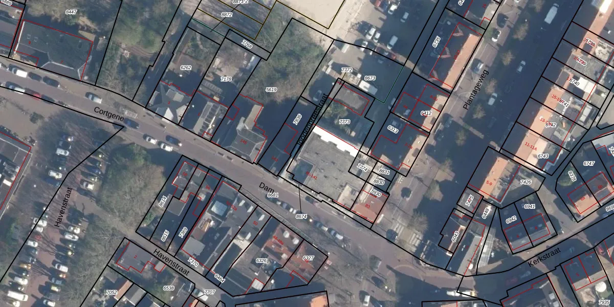 Het perceel waarop Dam 107 staat heeft een oppervlakte van 630 m². Dit is een groot perceel. De perceeloppervlakte wordt geregistreerd door het Kadaster. Gedetailleerde informatie over de maten van dit perceel kunt u vinden in het rapport Kadastrale kaart met maatvoering van Dam 107.