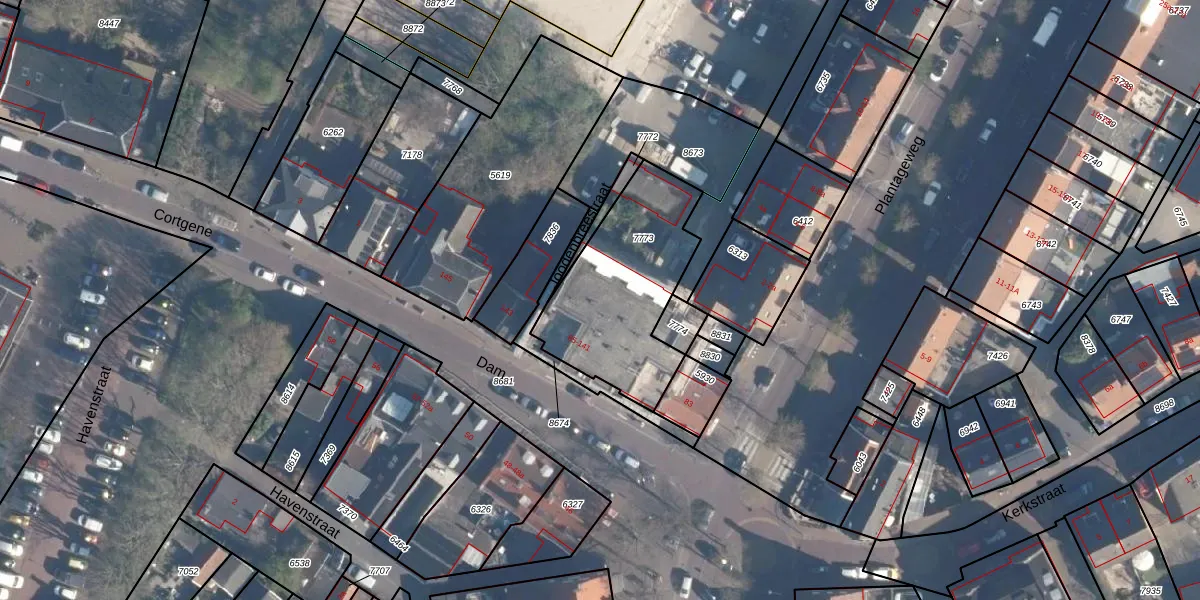 Het perceel waarop Dam 89 staat heeft een oppervlakte van 630 m². Dit is een groot perceel. De perceeloppervlakte wordt geregistreerd door het Kadaster. Gedetailleerde informatie over de maten van dit perceel kunt u vinden in het rapport Kadastrale kaart met maatvoering van Dam 89.