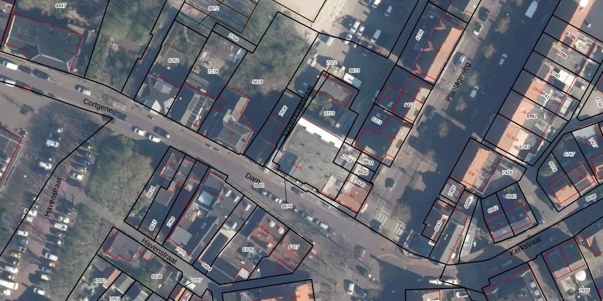 Het perceel waarop Dam 91 staat heeft een oppervlakte van 630 m². Dit is een groot perceel. De perceeloppervlakte wordt geregistreerd door het Kadaster. Gedetailleerde informatie over de maten van dit perceel kunt u vinden in het rapport Kadastrale kaart met maatvoering van Dam 91.