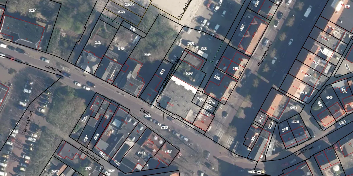 Het perceel waarop Dam 97 staat heeft een oppervlakte van 630 m². Dit is een groot perceel. De perceeloppervlakte wordt geregistreerd door het Kadaster. Gedetailleerde informatie over de maten van dit perceel kunt u vinden in het rapport Kadastrale kaart met maatvoering van Dam 97.