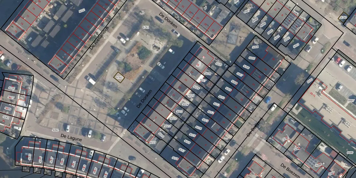Gebruik de zoekbalk of klik op een perceel voor informatie over de adressen binnen dit perceel.