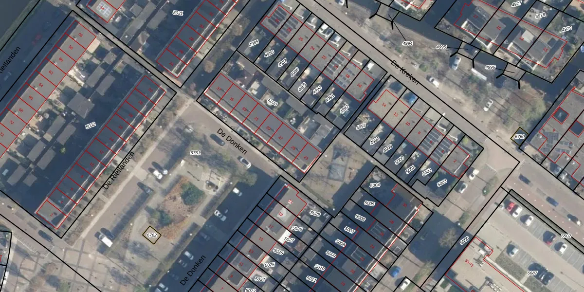 Het perceel waarop De Donken 25 staat heeft een oppervlakte van 1005 m². Dit is een zeer groot perceel. De perceeloppervlakte wordt geregistreerd door het Kadaster. Gedetailleerde informatie over de maten van dit perceel kunt u vinden in het rapport Kadastrale kaart met maatvoering van De Donken 25.